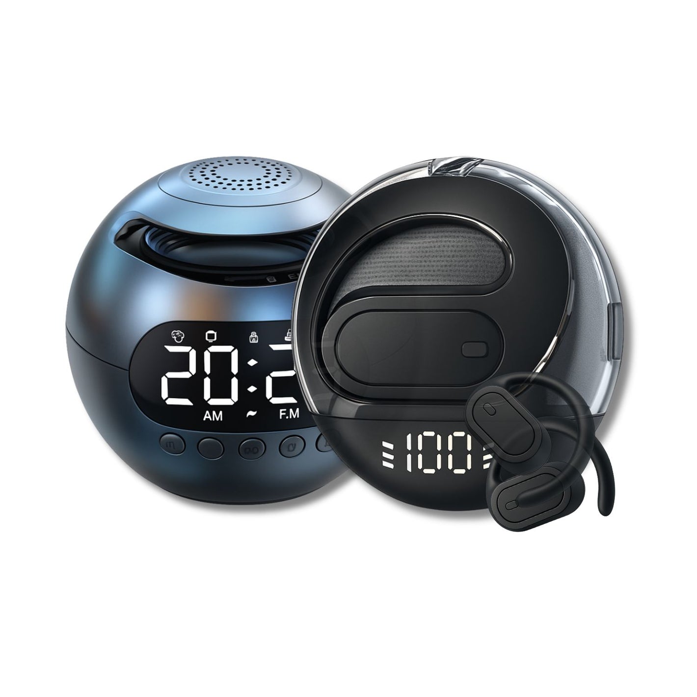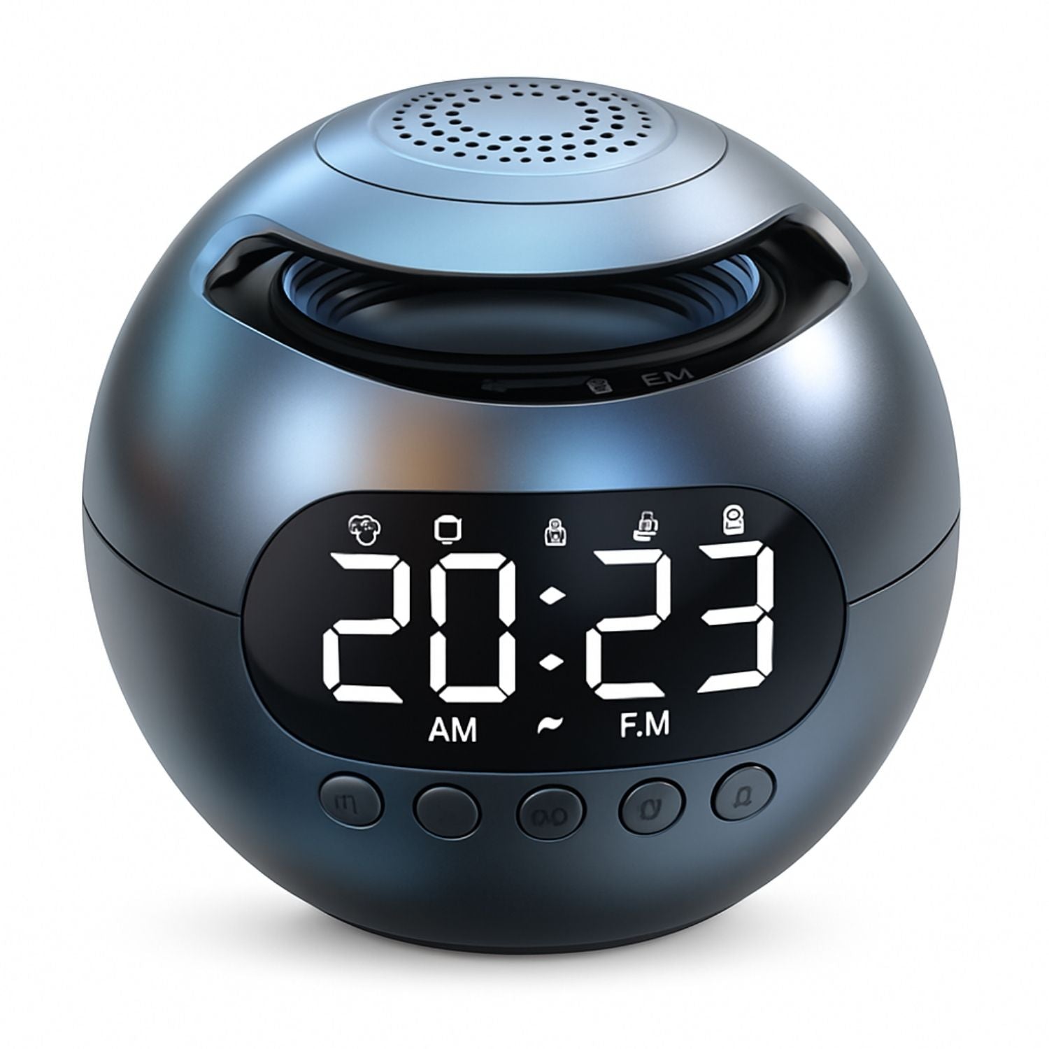 Your portable all-in-one LOOMI sound system — rich Bluetooth audio, dual alarms, and smart voice control in a sleek, travel-ready design.