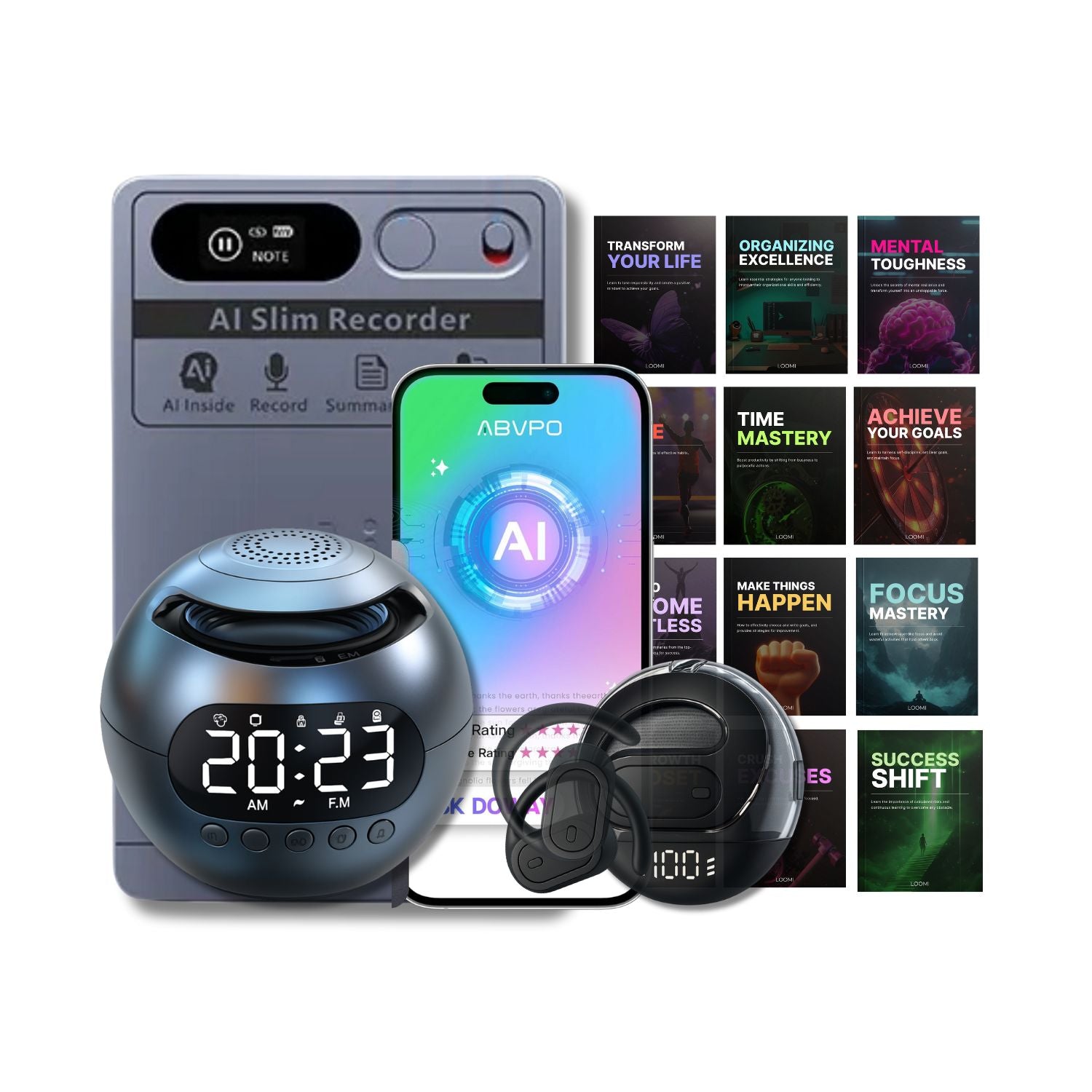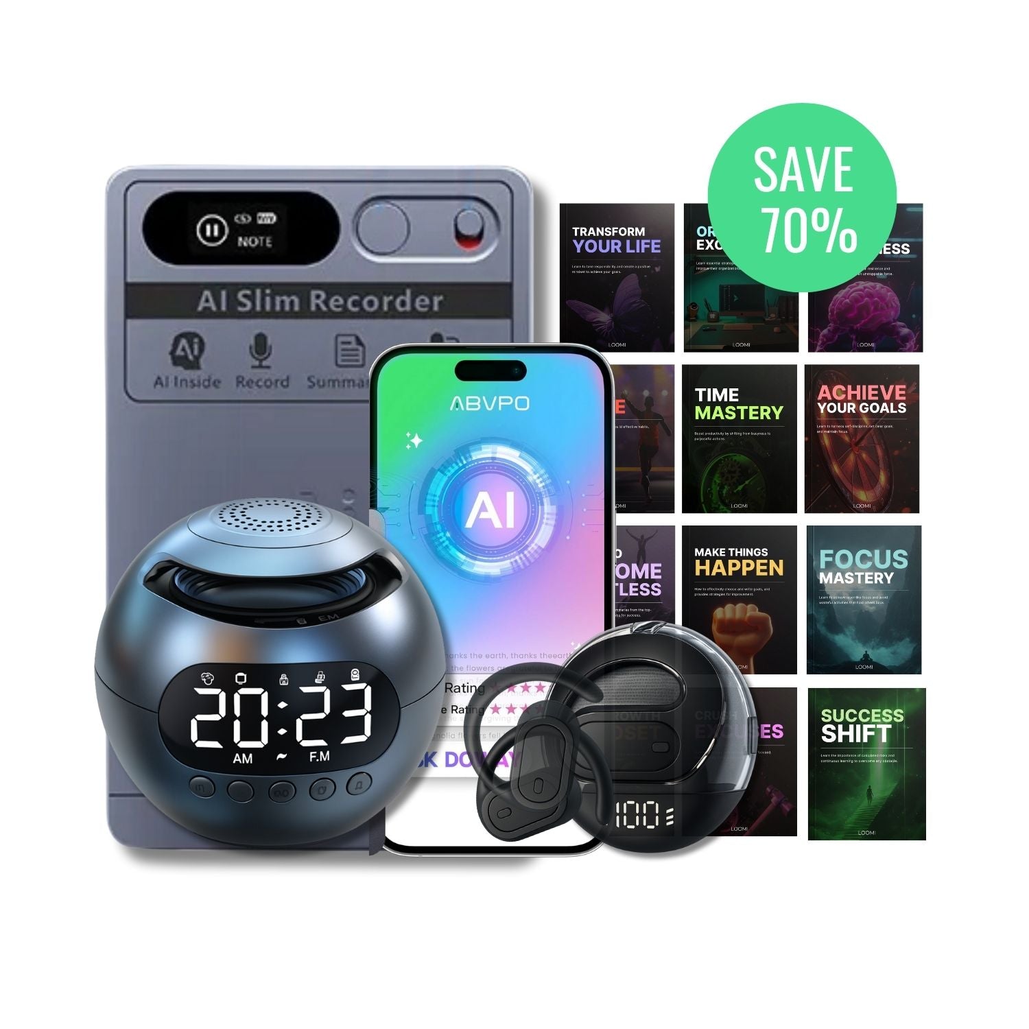Use the smart alarm speaker to wake clear and focused, review your notes, and stay productive throughout the day with a seamless three-device system.